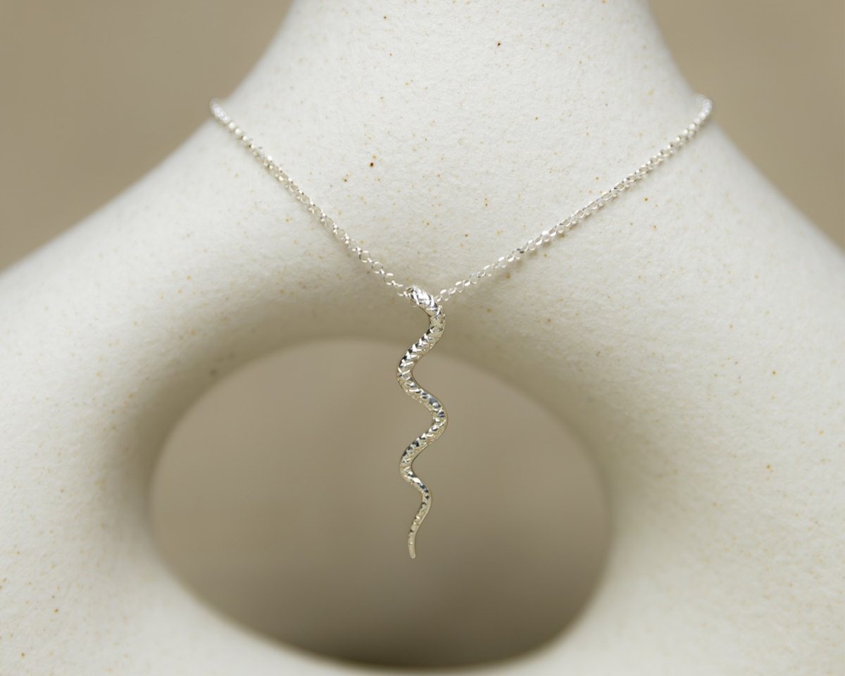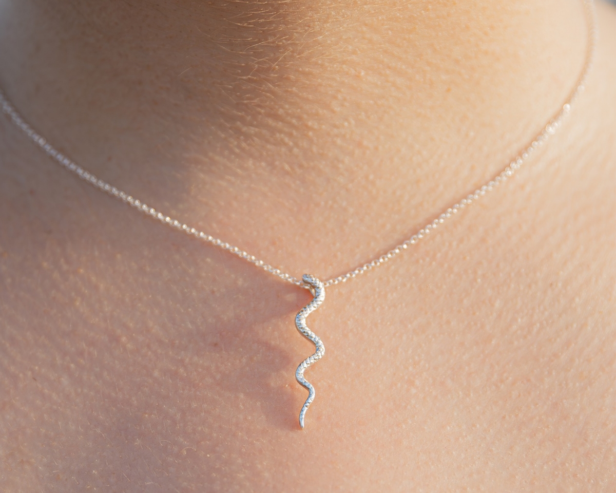 Este collar no pasa desapercibido. Su forma de serpiente lo convierte en ese detalle que transforma cualquier día. Hecho en plata. Pensado para ti.