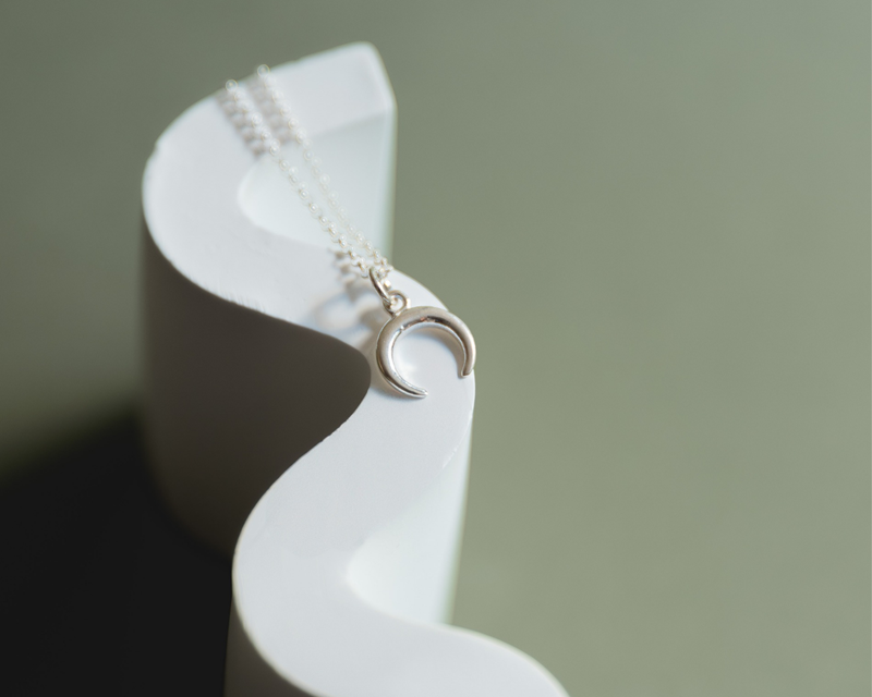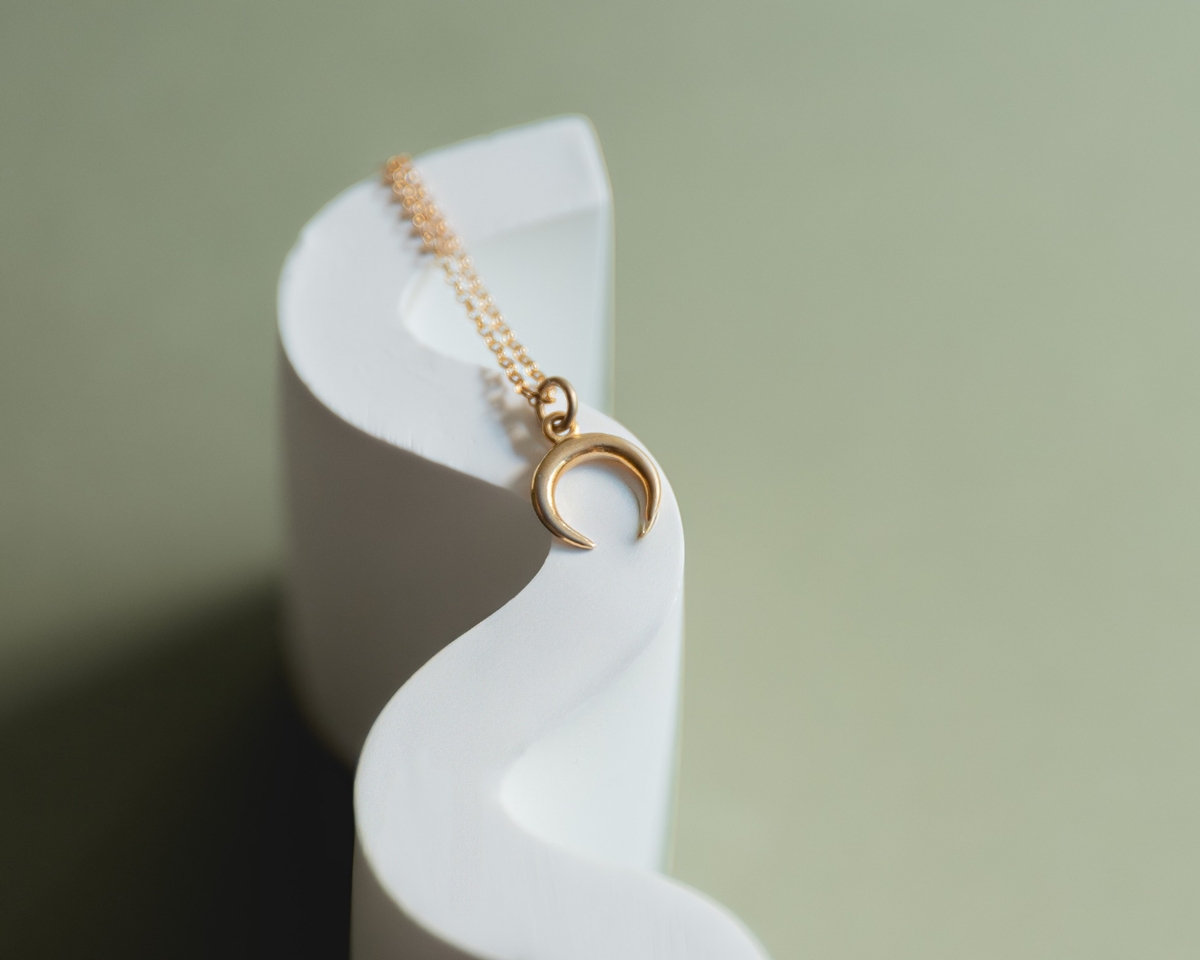 Un collar en forma de luna invertida. Delicado y sereno, pensado para acompañarte cada día.